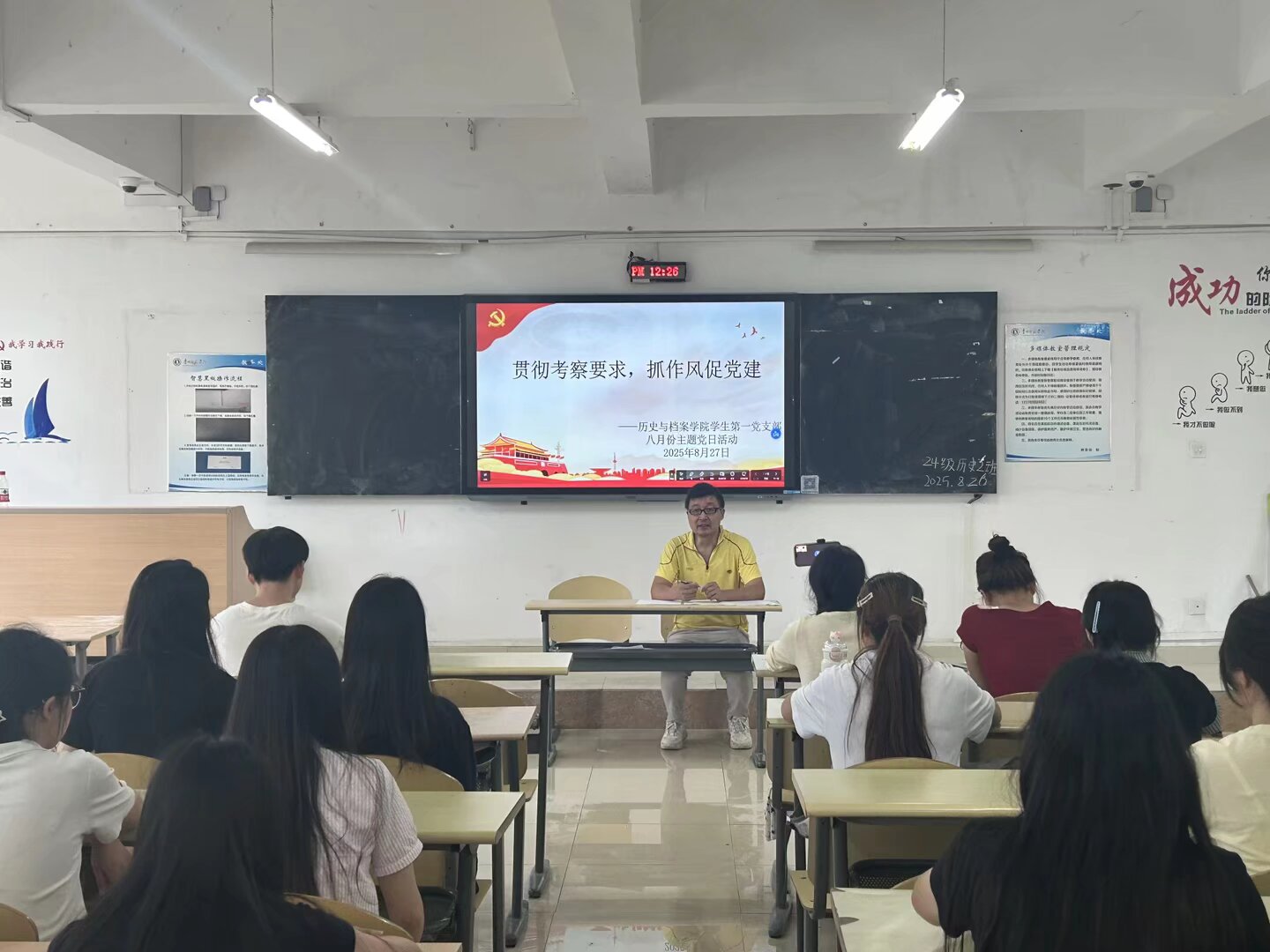 为了锤炼大学生党员务实作风、强化组织凝聚力,推动大学生党员精准把握转型发展方向、投身现代化转型实践,伟德bv1946官网学生第一党支部于8月27日在明德楼423教室开展以“贯彻考察要求,抓作风促党建”为主题的主题党日活动。活动由支部书记鲁华主持。