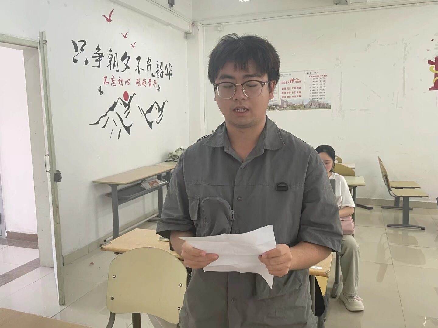 接着鲁华请党员代表交流分享。党员代表李雪表示:“通过此次党日活动,我明白了作风建设是党建的基石,对大学生党员而言,严谨务实的作风更是成长的必修课,今后我会以更高标准要求自己,以青春力量为党建工作添砖加瓦。”党员代表林勇合表明:“此次活动让我明白了考察要求是行动指南,抓作风要实打实,祛虚浮、强担当;促党建需固根基,聚合力、优服务。唯有知行合一,方能让组织更有力,事业更向前。”