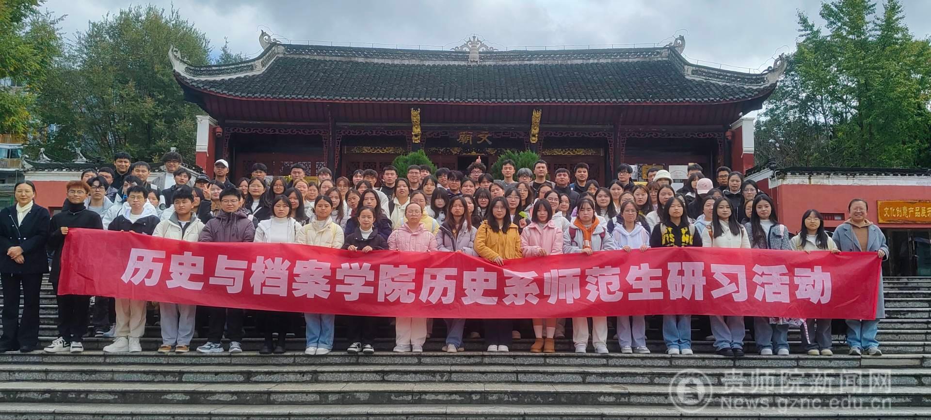 11月4日,历史系系主任梁中美副教授、优师生负责人朱更勇副教授、学科课程教师李瑞平副教授,带领 2023 级全体师范生,前往遵义湄潭浙江大学西迁陈列馆和永兴镇浙江大学西迁校址,进行研学活动,旨在让学生们深入了解浙江大学西迁历史,感受先辈们的求学精神和爱国情怀。