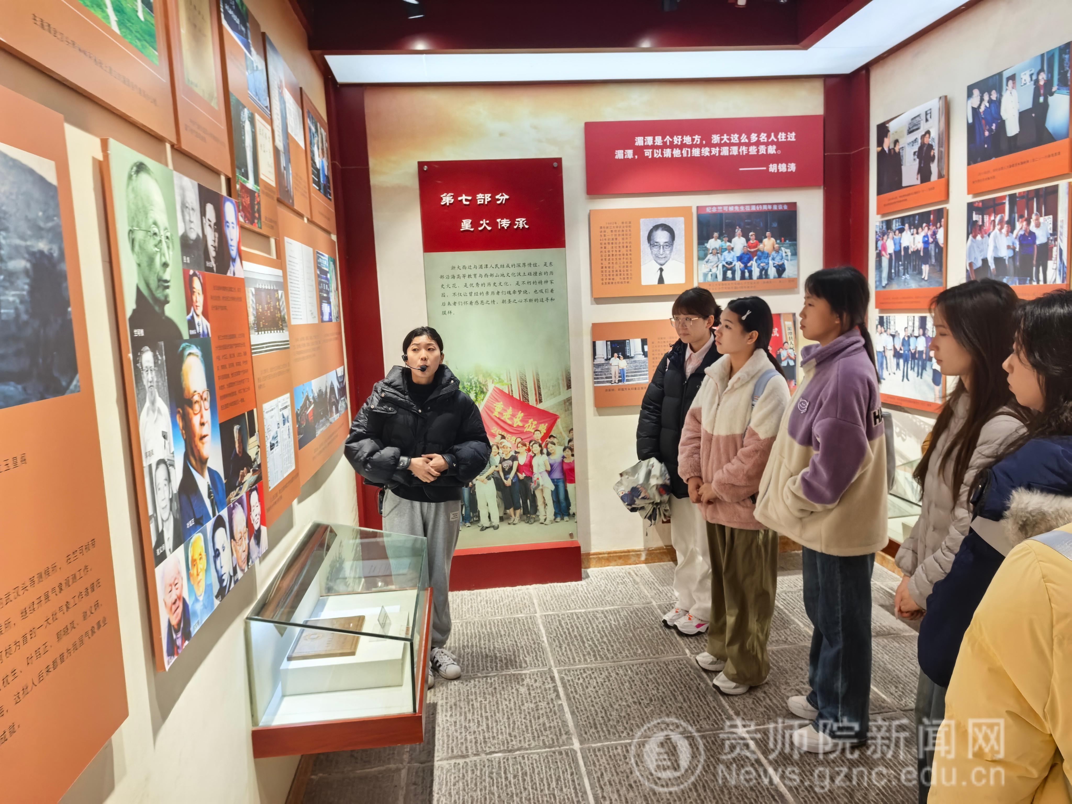当日,师生们首先来到湄潭县浙大西迁历史陈列馆。陈列馆内,泛黄的《竺可桢日记》、手绘的西迁路线图等珍贵史料,生动展现了 1939 年浙大师生在竺可桢校长率领下,辗转 2600 公里,从杭州迁至湄潭的艰辛历程。在校长办公室复原场景前,师生们驻足良久,深刻体会到了当年浙大师生在战火纷飞中坚持办学的不易。