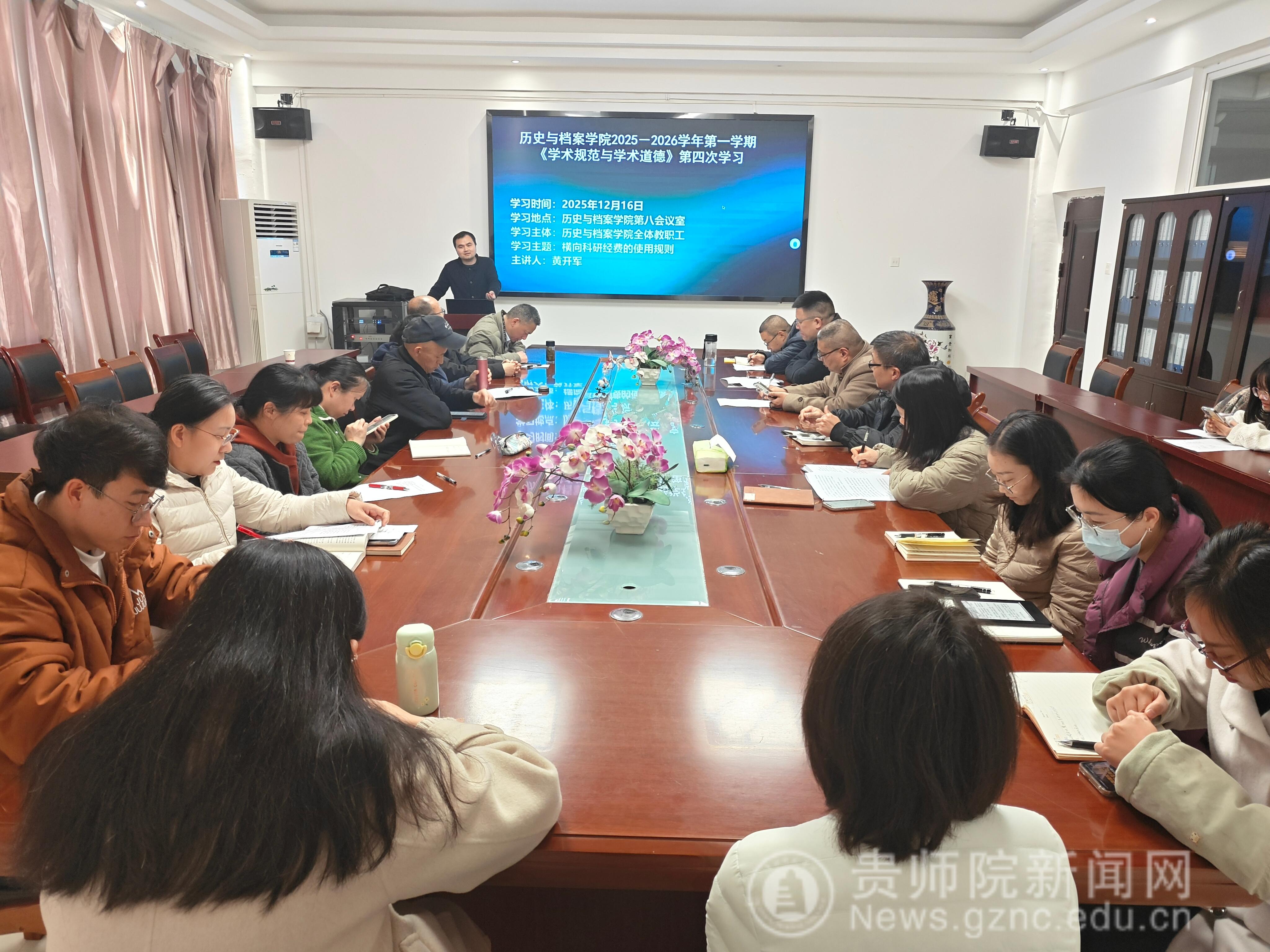 首先,由院长万国崔对本年度科研成绩进行总结。他表示,我们学院今年共成功立项8项,其中校级项目5项,厅级项目3项,共获得科研经费26万,成果不够,学院还需从激发人才活力、加大科研创新力度等方面,更好地推动科研工作发展。接下来黄开军在学术规范学习中讲述横向科研经费的使用,向老师们强调了学术规范的必要性。韦丹凤做了申硕工作总结与规划,她从师资建设、科研攻坚、人才培养等方面进行强调,提出学院需要聚焦申硕核心指标,瞄准申硕标准,着重考虑申硕需要。最后,万国崔安排部署2025年科研工作,他鼓励教师们积极参与科研,并为老师们介绍了学校和学院对科研工作的具体经费支撑措施,同时,我们学院要继续推进申硕工作的进行,争取早日申硕成功。