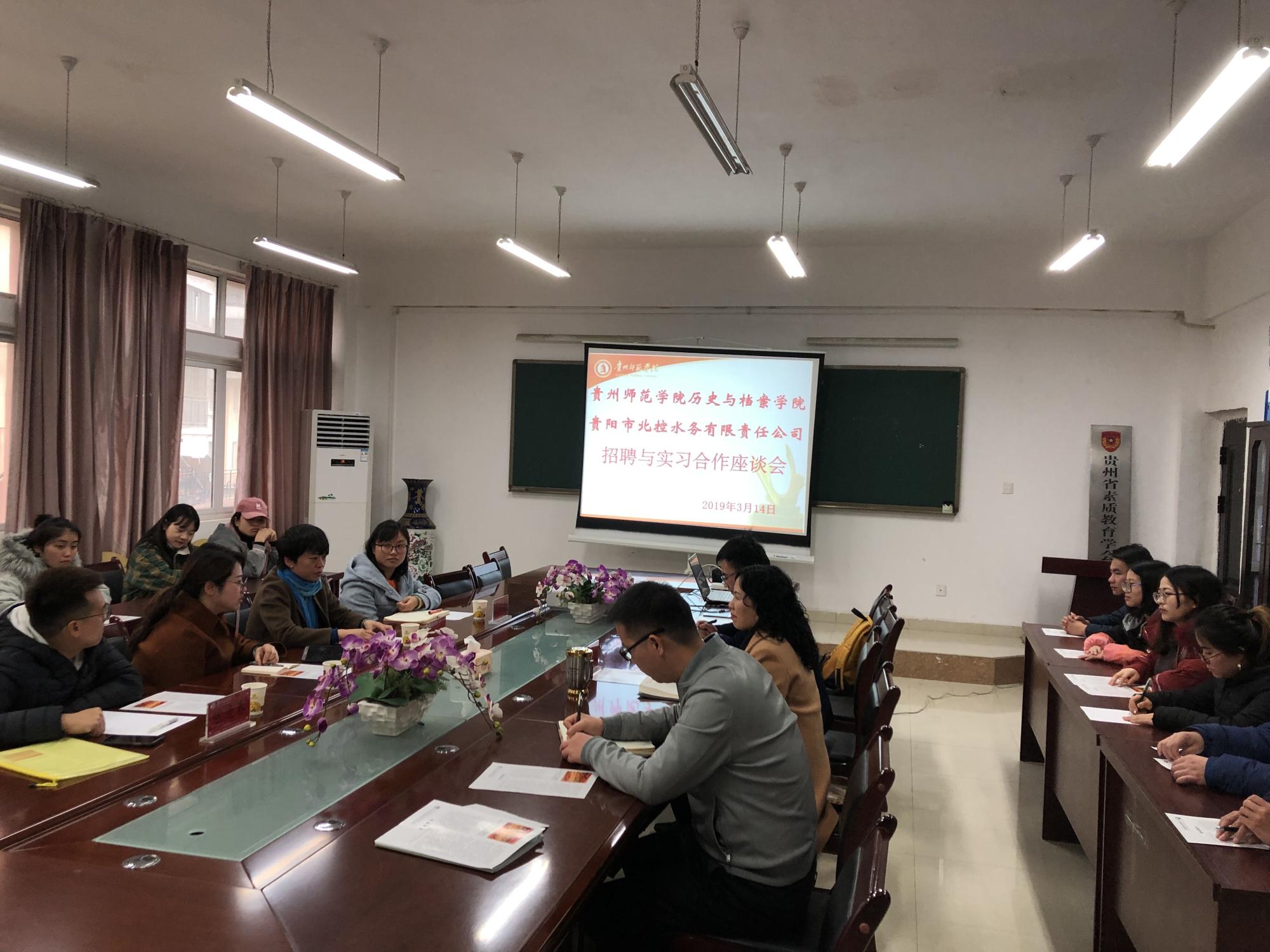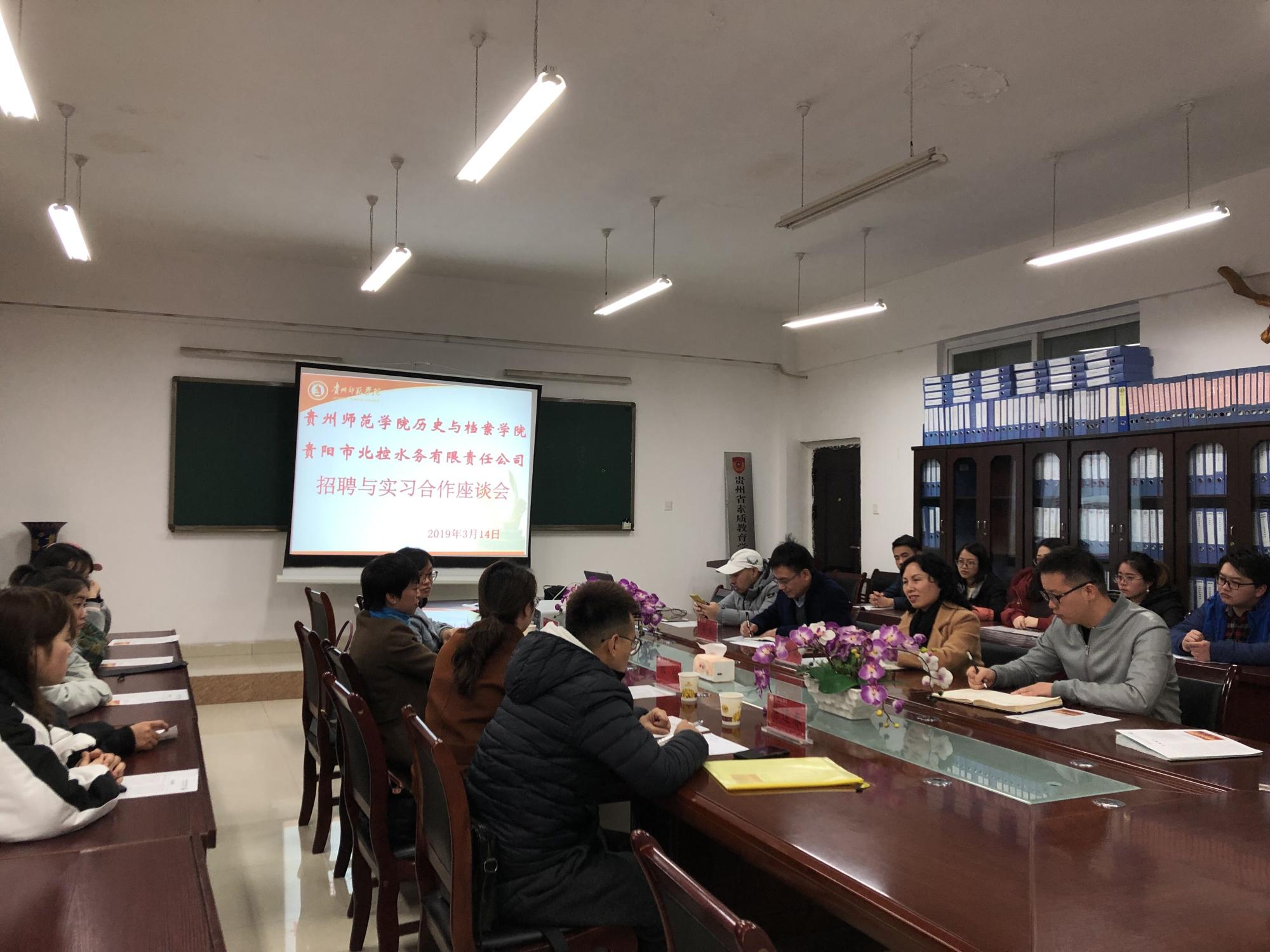 为提高实践教学质量,让毕业生更好地参与竞争,开拓实习和就业渠道,伟德bv1946官网联系贵阳北控水务有限责任公司(原贵阳市供水总公司)负责人,于3月14日到我院会议室开展面对面实习需求与招聘交流会。出席交流会的有贵阳北控水务有限责任公司党政办主任段莉、人力资源部副经理邹恬、党政办档案主管饶茄渝、人力资源部工作人员陈逢春,以及我院基层党委书记吴靖霞、副院长梁瑞、2016级辅导员任宗仪、办公室主任任艳华和2016级档案班学生代表。会议由副院长梁瑞主持。
