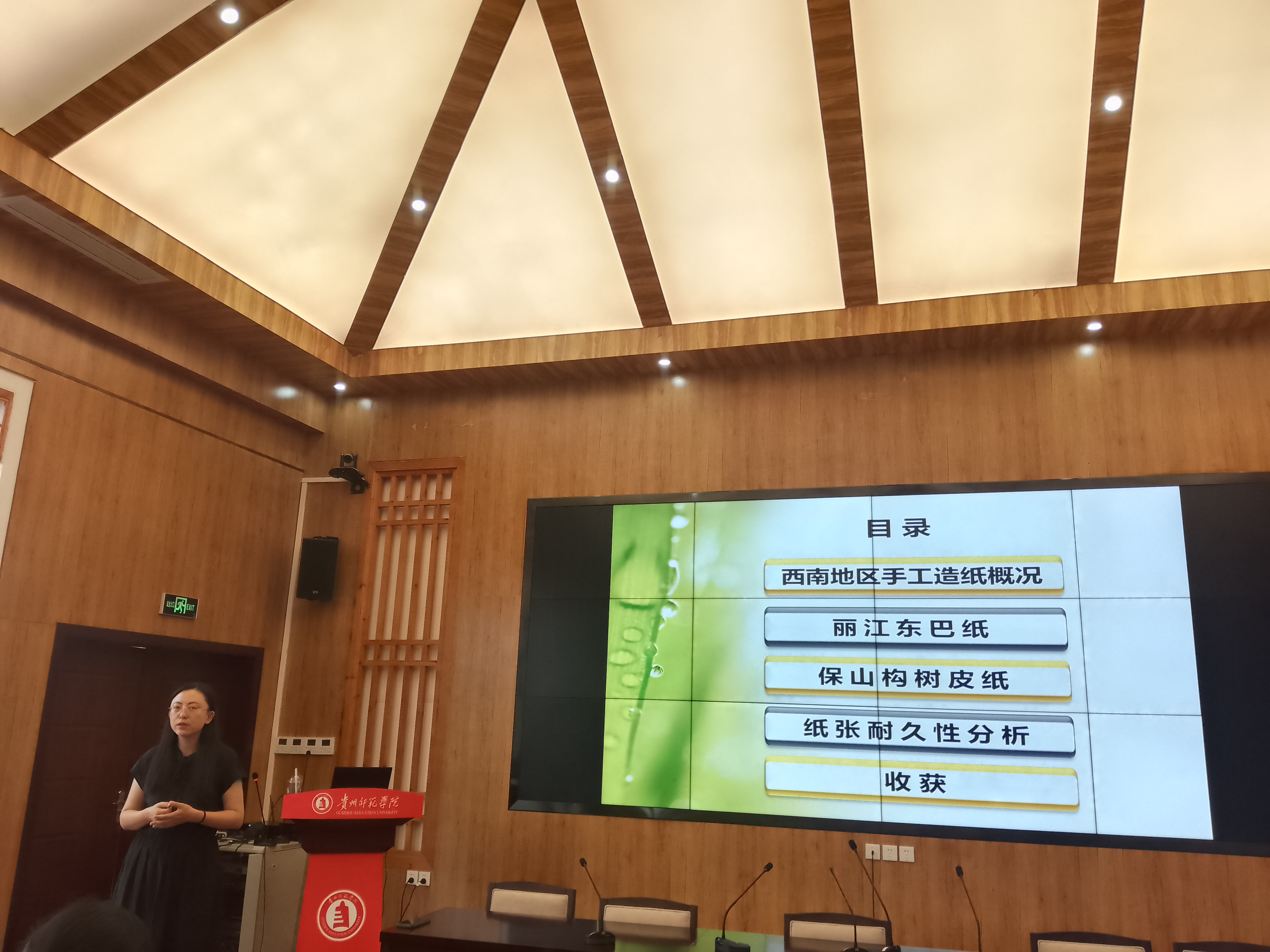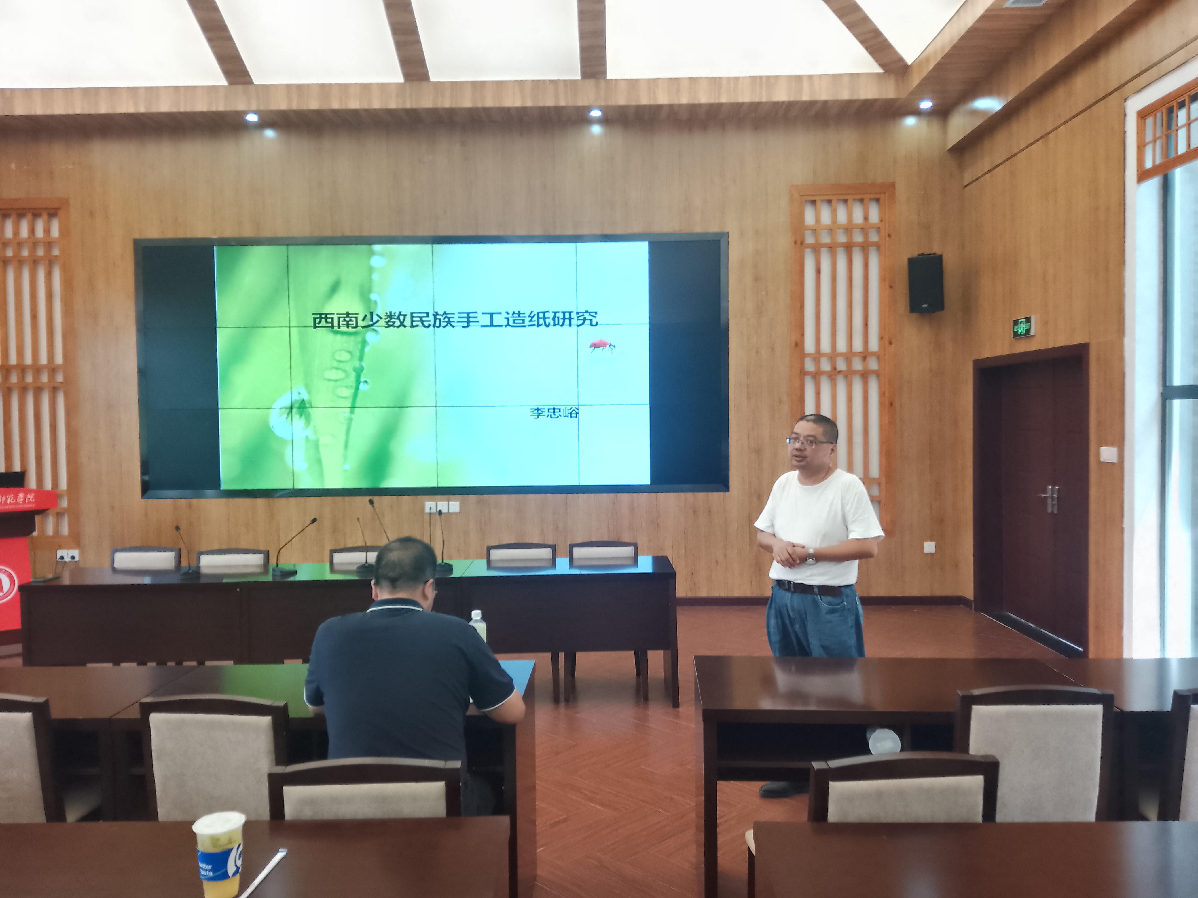接着,李忠峪教授详细介绍了她在研究西南少数民族手工造纸过程中的发现和心得。她通过大量的图片和视频,生动地描述了手工造纸的过程和技艺,让在场的师生们感受到了传统手工艺术的魅力。她还介绍了手工造纸的材料、工具和制作流程,并分享了自己在研究过程中的一些有趣故事。